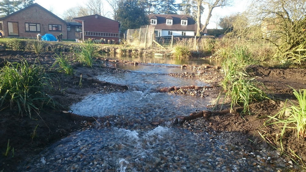 This project on the Pillhill Brook (a perennial Winter-Bourne near Andover, Hampshire), involved the replacement of a defective fixed-sill weir and fish pass.