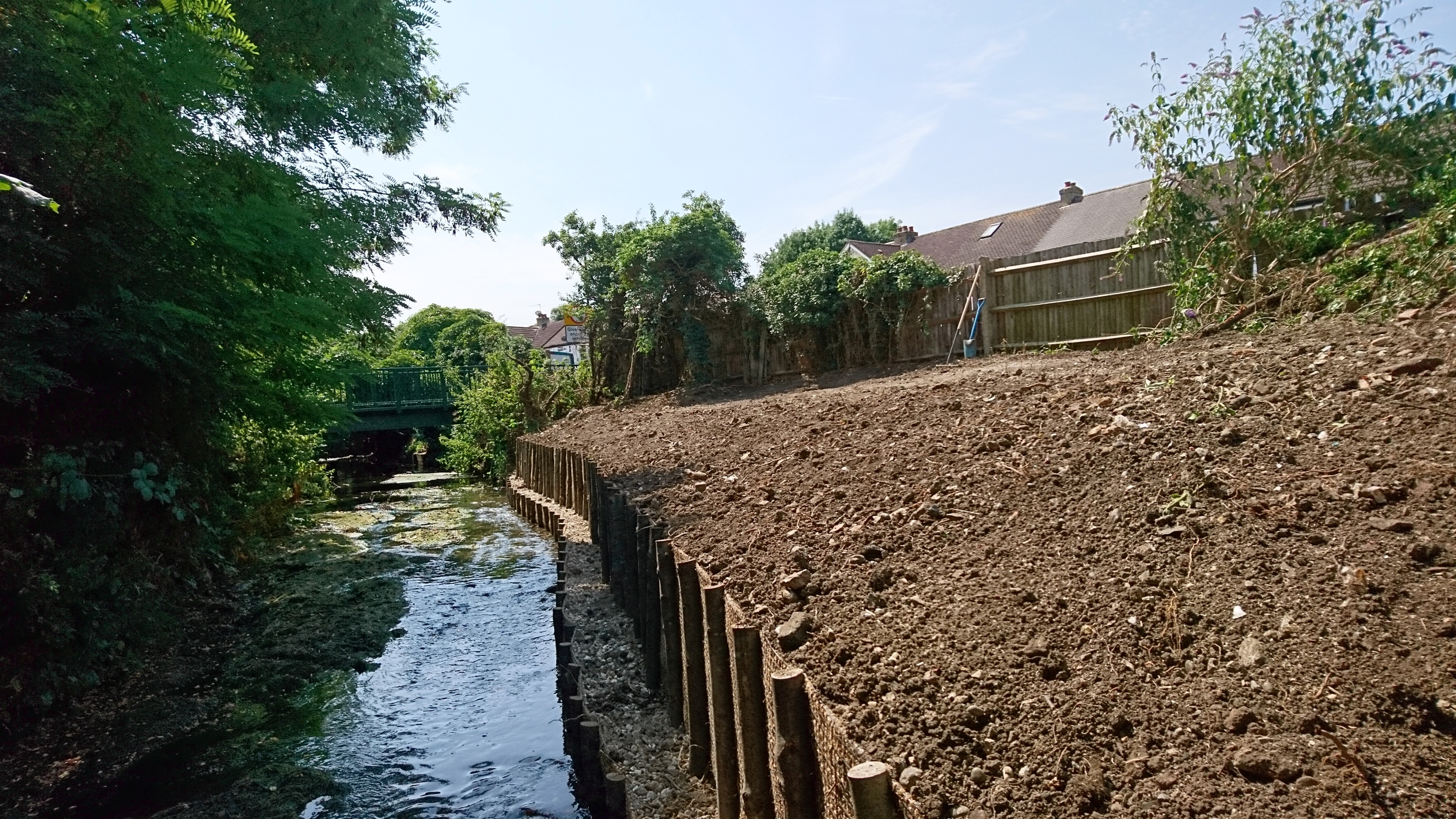 The finished project, delivered in June 2018, considerably increased our client’s garden area, and offered a long-term solution against erosion from the stream.