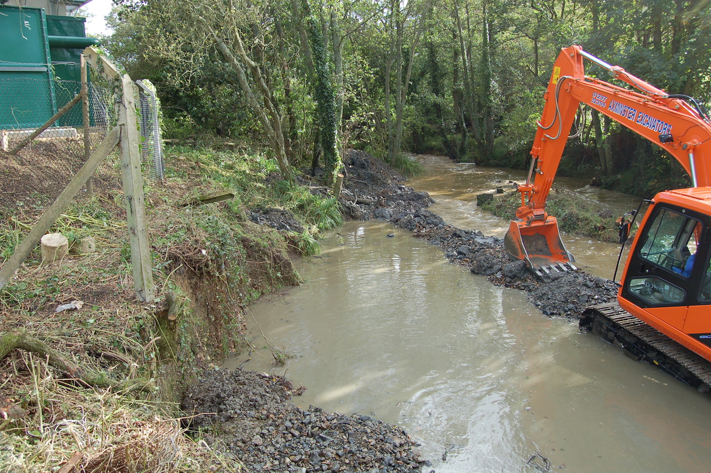 Wessex Water Plc operates a local sewage treatment works, the settlement tank of which is perched close to the edge of a highly-erosive outside bend of the river, shortly before it enters sea.
