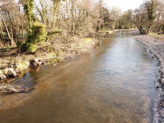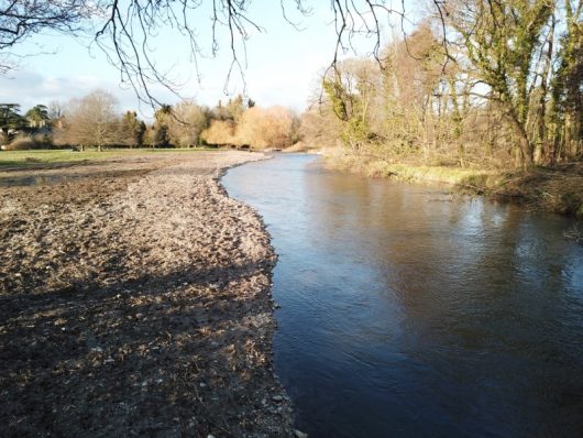 Dredged, dammed-up river channels act as huge sediment repositories. They appear dark, dead and bottomless due to the blanket covering of eroded agricultural soil, rubber tyre granules and chemical compounds flushed into the river from roads and agricultural land drains in the upstream catchment. These unwanted alien substrates combine with a cocktail of chemicals including Phosphates and Neonicotinoid insecticides to create a toxic and severely degraded in-stream habitat.