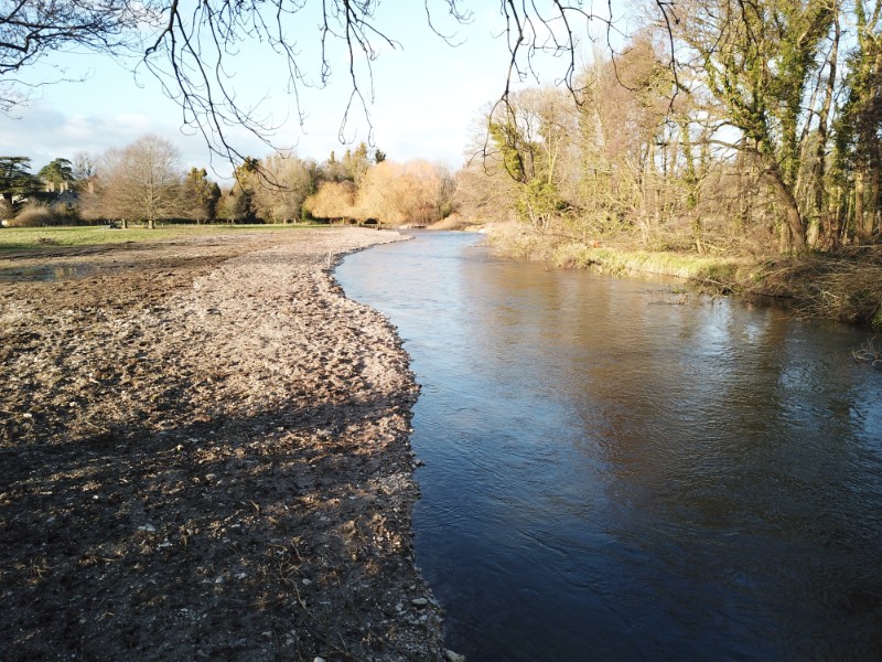 - Excavation of the true R/H angler bank to form a new gravel-fronted outside meander.