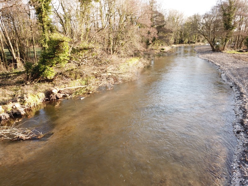 - Installation of a continuous raised-gravel bund down the entire length of the reach on the opposite (non-fishing) L/H bank, to form a new sub-surface inside meander with back-water.