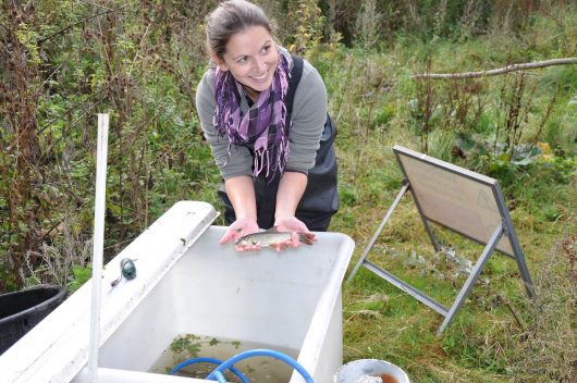 18 months later the new channel was electro-fished. Over 500 individual fish were recorded covering 13 different species in a 250 meter stretch.